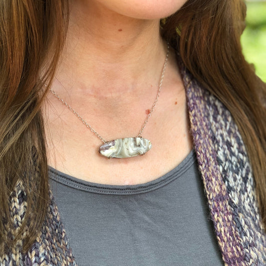 Agate Pendant, Natural Stone Pendant, Large Pendant, Agate Necklace, Oval Pendant, Prong set, Everyday NecklaceRegular price $149.00 USDRegular priceUnit price / per-