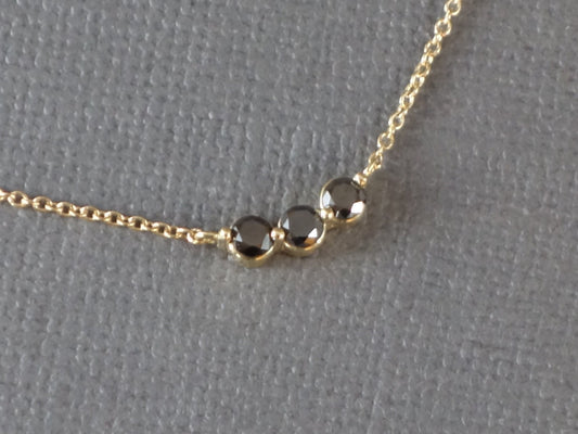 14k Gold Necklace with Black Diamonds, 3 Stone Diamond Pendant, Diamond Curved Bar, Past Present Future Necklace, Diamond Pendant.Regular price $599.00 USDRegular priceUnit price / per-