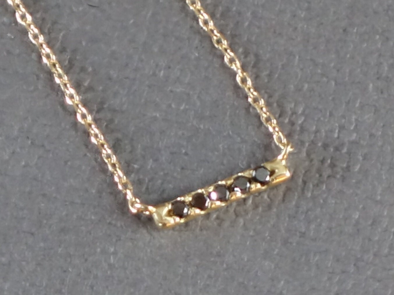 14K Solid Gold Bar Necklace with Black Diamonds, Skinny Gold Bar Necklace, Dainty 14k gold Bar Necklace, Diamond Pendant. Diamond Bar