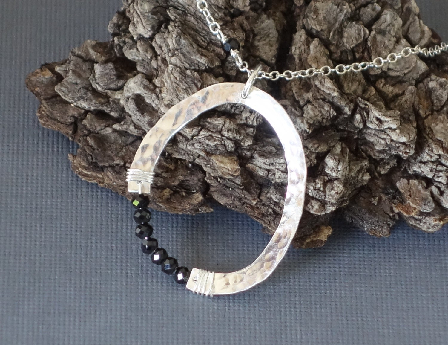 Black Spinel Necklace, Long Necklace, Oval Pendant, Black Spinel Pendant, August Spinel